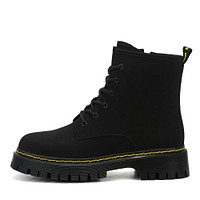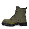 Дизайн актуальных ботинок выполнен в модной милитаристской эстетике, которая отражена и в насыщенном цвете хаки. Материал верха - гладкая, устойчивая к влаге и ветру, кожа из спилка. Подкладка и стелька утеплены мягким ворсином. Рант прошит акцентными желтыми нитками. Высокая подошва из ПВХ с выраженными протекторами обеспечивает хорошую амортизацию во время движения. Модель фиксируется шнурками и удобной застежкой на молнию.