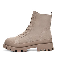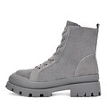 Лаконичные серые ботинки с высокой шнуровкой. Материал верха - прочный спилок с бархатистой фактурой. Шерстяные подкладка и стелька поддерживают комфортную температуру внутри пары. Высокая резиновая подошва с глубокими протекторами отличается прочностью и надёжным сцеплением с поверхностью.
