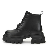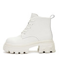 Трендовые массивные ботинки в ярком белом оттенке. Материал верха - практичная кожа из спилка. Подкладка и стелька утеплены мягким ворсином. Высокая тракторная подошва и каблук высотой 6,5 см из материала ТЭП поддерживают стопы в оптимальном положении и обеспечивают надежное сцепление с поверхностью.