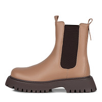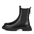 Кожаные черные ботинки-челси на массивной подошве. Пара утеплена мягкой натуральной шерстью. Высокая рифленая подошва из материала ТЭП обеспечивает хорошую устойчивость на любых покрытиях. Эластичные вставки гарантируют идеальную посадку.