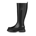 Классические черные сапоги на холодный сезон. Верх комбинирует глянцевую и матовую кожу из спилка с влагонепроницаемым покрытием. Пара утеплена мягкой натуральной шерстью для оптимальной терморегуляции стоп, ворсин в районе голенища сохраняет изящество модели на ноге. Высокая резиновая подошва с выраженными протекторами отличается прочностью и хорошим сцеплением с поверхностью.