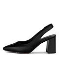Модельные туфли с закрытым острым носком и открытой пяткой – это универсальная обувь, которая дополнит повседневный или праздничный наряд. Она отлично смотрится с брючными костюмами или брюками из тонкой ткани, платьями разных фасонов. Обувь выполнена из натуральной кожи, подошва – резиновая. Каблук широкий, устойчивый, его высота – 80 мм. Фиксируется обувь резинкой.