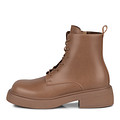 Лаконичные бежевые кожаные ботинки со шнуровкой и застежкой на молнию. Пара с утеплением из мягкого ворсина. Модель на утолщенной подошве из материала ТЭП. Петля на голенище ускоряет процесс надевания обуви. Ботинки хорошо дополнят образы с брюками, юбками и платьями.