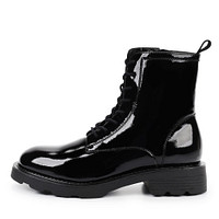 Акцентные бежевые ботинки выполнены из лакированной кожи. Подкладка и стелька изготовлены из мягкого ворсина. Графичнная подошва из материала ТЭП легкая и прочная. Благодаря рифленой поверхности она обеспечивает устойчивость на любых покрытиях. Петля на голенище ускоряют процесс фиксации обуви. Модель со шнуровкой дополнена удобной застежкой на молнию.