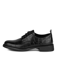 Классические кожаные полуботинки с фактурой «под рептилию» и мягким блеском. Текстильная подкладка и стелька из нежной кожи шевро обеспечивают комфорт стоп. Женские оксфорды дополнены широким каблуком высотой 30 мм и удобной шнуровкой, надежно фиксирующей обувь на ноге.