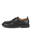 Классические чёрные полуботинки. Материал верха дерби — матовая кожа из спилка, чья мягкость гарантирует комфортную посадку обуви на ноге. За надёжную фиксацию пары отвечают прочные шнурки. Полиуретановая подошва отличается лёгкостью и эластичностью, что облегчает толчковую функцию стопы.