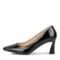 Эффектные кожаные туфли черного цвета на фигурном каблуке. Глянцевая фактура верха добавляет любому образу изюминку. Комфорт стоп, хорошую воздухопроницаемость и идеальную посадку гарантируют кожаная подкладка и стелька из нежной кожи шевро. Туфли-лодочки на каблуке высотой 75 мм гармонично впишутся в комплекты с юбками, платьями, джинсами и деловыми костюмами.