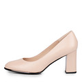Классические бежевые туфли-лодочки на устойчивом каблуке. Верх демисезонных туфель выполнен из мягкой кожи шевро с матовой фактурой. Подкладка изготовлена из натуральной кожи, а перфорированная стелька — из шевро — эти материалы обеспечивают хороший воздухо- и влагообмен и гарантируют комфорт стоп. Модель дополнена блестящим рантом.