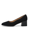 Элегантные черные туфли из бархатистого велюра на удобном широком каблуке. Утолщенная перфорированная подкладка, выполненная из натуральной кожи, и стелька из шевро обеспечивают комфортный воздухообмен.