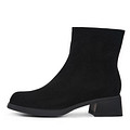 Эффектные черные ботильоны из мягкого ворсистого велюра. Пара с трендовым квадратным мысом и акцентным швом по центру носочной части. Удобная молния ускоряет процесс фиксации обуви на ноге. Графичный каблук высотой 46 мм позволяет нагрузке равномерно распределяться по стопе. Эластичная вставка на голенище гарантирует идеальную посадку.
