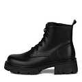 Базовые черные ботинки выполнены из гладкой натуральной кожи. Пара утеплена мягким ворсином. Высокая рифленая подошва из материала ТЭП поддерживает стопы в оптимальном положении и защищает стопы от холода. Модель со шнуровкой дополнена практичной застежкой на молнию и петлей на голенище. Ботинки отлично дополнят образы с широкими укороченными брюками, трикотажными платьями, джинсами.
