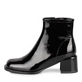 Эффектные черные лаковые ботильоны на широком устойчивом каблуке. Пара с трендовым квадратным мысом и акцентным швом по центру носочной части. Удобная молния ускоряет процесс фиксации обуви на ноге. Графичный каблук высотой 60 мм позволяет нагрузке равномерно распределяться по стопе. Эластичная вставка на голенище гарантирует идеальную посадку.