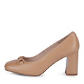 Универсальные бежевые туфли на устойчивом каблуке. Верх выполнен из матовой кожи шевро. Комфорт стоп обеспечивают кожаная подкладка и стелька из нежной кожи шевро. Устойчивый каблук высотой 76 мм гарантирует оптимальную поддержку. Пара отлично впишется в образы с брючными костюмами, воздушными платьями и юбками.