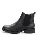 Практичные женские ботинки черного цвета — это максимально универсальная модель, и идеальный вариант повседневной обуви. Лаконичный дизайн позволит сочетать ее с различными вариантами гардероба, а простота форм и широкий каблук высотой 2 см обеспечат невероятный комфорт. Материал верха – искусственная кожа.
