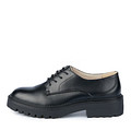 Черные полуботинки в классическом стиле. Подкладка и стелька выполнены из мягкой натуральной кожи, которая гарантирует оптимальный воздухообмен. Женские оксфорды на графичной платформе из материала ТЭП обеспечивают надежную поддержку стоп и устойчивость на любых покрытиях.