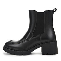 Архитектурные ботильоны в шоколадном оттенке. Верх выполнен из кожи из спилка. Подкладка и стелька утеплены мягким ворсином. Пара удобно фиксируется молнией. Утолщенная подошва из материала ТЭП отличается хорошим сцеплением с поверхностью. Блочный каблук высотой 7 см устойчив и грамотно распределяет нагрузку на стопы.
