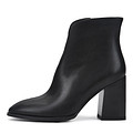 Изящные женские ботильоны из натуральной кожи. Модель с подкладкой из ворсина, она хорошо согревает ступни. Обувь закрывает щиколотку, шов в центральной части обуви делает стопу изящнее. Носок вытянутый. Каблук трапециевидной формы, он устойчивый и комфортный. У пары удобная колодка.