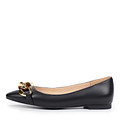 Элегантные кожаные балетки с заостренной носочной частью. Ощущение комфорта в течение всего дня обеспечивают подкладка и стелька, изготовленные из натуральной кожи. Трендовая модель дополнена крупной цепочкой, добавляющей образам утонченности и шарма. Черные балетки являются универсальным вариантом обуви, идеально сочетающимся с различными элементами гардероба, включая платья, брюки, воздушные юбки, джинсы.