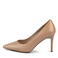 Бежевые кожаные туфли с заостренной формой носочной части. Модель с мягкой кожаной подкладкой и стелькой, изготовленной из нежной кожи шевро. Тонкий каблук высотой 85 мм визуально делает силуэт более изящным.