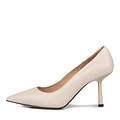 Классические бежевые туфли-лодочки из кожи шевро с выделкой «под рептилию». О комфорте стоп в течение всего дня заботятся мягкая кожаная подкладка и стелька из шевро. Фигурный каблук высотой 85 мм визуально делает силуэт более изящным. Благодаря лаконичному дизайну и базовой расцветке кожаные туфли гармонично впишутся в деловые образы.