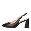 Элегантные кожаные туфли черного цвета на устойчивом каблуке. Мягкая кожаная подкладка и стелька из нежной кожи шевро обеспечивают комфорт стоп даже при длительном использовании обуви. Трендовые слингбэки на фигурном каблуке высотой 75 мм гармонично дополнят образы с платьями, джинсами, деловыми костюмами.