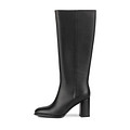 Эффектные черные кожаные сапоги на устойчивом каблуке. Подкладка и стелька из мягкого ворсина обеспечивают комфорт в любую погоду. Модель с удобной застежкой на молнию. Эластичные вставки на голенщине гарантируют удобную посадку. Устойчивый каблук высотой 82 мм позволяет нагрузке распределяться равномерно.