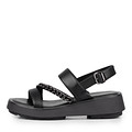 Базовые кожаные сандалии черного цвета, декорированные цепочкой. Широкие ремешки с подкладкой из мягкой натуральной кожи надежно фиксируют обувь на ноге. Гибкая подошва из термпопластичной резины отличается прочностью и поддерживает стопы в естественном положении. Летние сандалии гармонично дополнят образы с джинсами, прямыми юбками и шортами.