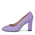 Акцентные фиолетовые туфли с геометричным каблуком. Вех выполнен из матовой кожи шевро. За идеальную посадку и оптимальный воздухообмен отвечают кожаная подкладка и стелька, изготовленная из нежной кожи шевро. Устойчивый каблук высотой 85 мм обеспечивает равномерное распределение нагрузки по стопе.