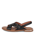 Черные кожаные сандалии в трендовом ретро-дизайне. Изящные ремешки с мягкой кожаной подкладкой надежно фиксируют пару на ноге. Гибкая подошва из резины формирует оптимальную поддержку. Модель с классическим замком с пряжкой.
