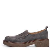 Минималистичные бежевые велюровые лоферы. За комфорт стоп отвечают мягкая стелька и подкладка, выполненные из натуральной кожи. Высокая подошва из материала ТЭП поддерживает стопы в оптимальном положении.