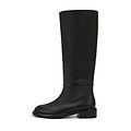 Сапоги с миндалевидным мысом и каблуком 35 мм изготовили из кожи из спилка. Пара выполнена в чёрном цвете. Материал подкладки и стельки ворсин — выбор тех, кто ценит лёгкость, тепло и свежесть ног в межсезонье. Материал не утяжеляет пару и не деформируется со временем. Подошва из резины не только устойчива к скольжению, но и обладает достаточной упругостью, чтобы сделать каждый шаг комфортным даже при длительной ходьбе.
