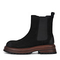 Трендовые челси выполнены из мягкого нубука в классическом чёрном оттенке. Подкладка из бархатистого ворсина придаёт ощущение комфорта и тепла. Петля в пяточной части помогает ускорить процесс надевания. Контрастная бордовая подошва из материала ТЭП отличается гибкостью и прочностью, что важно для людей с активным образом жизни.