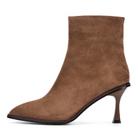 Элегантные черные ботильоны с острым носом. Материал верха - нежная кожа шевро. Подкладка и стелька утеплены мягким ворсином. Резиновая подошва, декорированная аккуратной строчкой, отличается прочностью. Тонкий устойчивый каблук высотой 7,5 см грамотно распределяет нагрузку на стопы.