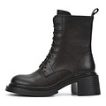 Эффектные коричневые ботильоны с высокой шнуровкой. Материал верха - текстурированная кожа из спилка. Пара утеплена ворсином. Утолщенная подошва из материала ТЭП и блочный каблук высотой 6,5 см грамотно распределяют нагрузку на стопы и обеспечивают устойчивость.