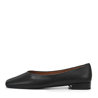 Минималистичные туфли-лодочки сшили из нежной кожи шевро. Модель бордового цвета с квадратным мысом и глубоким вырезом. Пара на широком устойчивом каблуке 18 мм.