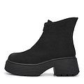 Минималистичные черные ботинки на платформе. Верх выполнен из плотного нубука с бархатистой фактурой. Подкладка и стелька утеплены натуральной шерстью для комфортной терморегуляции. Высокая подошва из ТЭП отличается легкостью, морозоустойчивостью и хорошим сцеплением с поверхностью.