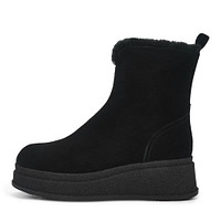Базовые черные ботинки на платформе. Верх выполнен из мелкозернистой натуральной кожи. Шерстяная стелька обеспечивает комфортную терморегуляцию стоп. Высокая подошва из ТЭП отличается легкостью, морозоустойчивостью и хорошим сцеплением с любым покрытием.
