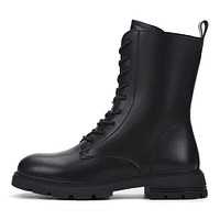 Лаконичные черные ботинки с высокой шнуровкой. Верх выполнен из прочного спилка с бархатистой фактурой. Стелька утеплена мягким ворсином. Высокая резиновая подошва с выраженными протекторами отличается прочностью и хорошим сцеплением с поверхностью. Модель с удобной застежкой на молнию.