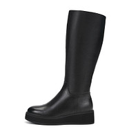 Лаконичные черные сапоги на платформе. Материал верха - бархатистый спилок. Подкладка и стелька утеплены мягкой натуральной шерстью для оптимальной терморегуляции на улице и в помещении. Высокая подошва из материала ТЭП отличается легкостью, морозоустойчивостью и хорошим сцеплением с любой поверхностью.
