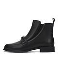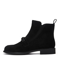 Изящные черные ботинки с декоративной цепью в тон на подъеме. Верх выполнен из нежной кожи шевро. Пара утеплена мягким ворсином. Утолщенная подошва из материала ТЭП обеспечивает надежное сцепление с поверхностью.
