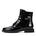 Минималистичные черные ботинки в классическом стиле. Материал верха - лакированная кожа из спилка. Подкладка и стелька утеплены мягким ворсином. Утолщенная подошва из материала ТЭП отличается прочностью и морозоустойчивостью. Модель фиксируется шнурками, а молния облегчает процесс надевания.
