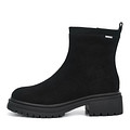 Повседневные черные ботильоны на широком каблуке 5 см. Верх выполнен из прочного спилка с бархатистой фактурой. Шерстяная стелька обеспечивает комфортную терморегуляцию стоп. Утолщенная подошва из материала ТЭП с выраженными протекторами отличается легкостью, морозоустойчивостью и хорошим сцеплением с поверхностью.