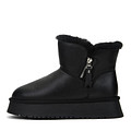 Лаконичные черные угги для долгих прогулок. Материал верха - текстурированная кожа из спилка. Подкладка и стелька утеплены натуральной шерстью. Молния на боковой части модели украшает модель и облегчает процесс надевания. Высокая подошва из ТЭП отличается прочностью и хорошим сцеплением с поверхностью.