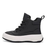 Комфортные молочные ботинки подойдут для долгих прогулок в холодный сезон. Верх выполнен из современной искусственной кожи, которая надежно защищает стопы от ветра и влаги. Подкладка и стелька из натуральной шерсти обеспечивают оптимальную терморегуляцию внутри обуви. Высокая резиновая подошва отличается прочностью и хорошим сцеплением с поверхностью. Модель фиксируется шнуровкой и удобно застегивается на молнию.