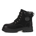 Базовые черные ботинки с высокой шнуровкой. Материал верха - практичная кожа из спилка. Утолщенный ворот бережно поддерживает зону щиколоток. Подкладка и стелька утеплены мягкой натуральной шерстью, которая обеспечивает оптимальную терморегуляцию внутри пары. Подошва из ТЭП с выраженными протекторами отличается устойчивостью на любых покрытиях и легкими амортизирующими свойствами. Удобная молния ускоряет процесс фиксации пары.