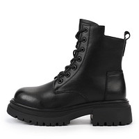 Утепленные бежевые ботинки с высокой шнуровкой. Верх обуви выполнен из гладкой натуральной кожи. Мягкий ворсин на подкладке и стельке обеспечивает комфорт стоп даже при длительных прогулках в холодную погоду. Высокая рифленая подошва из резины гарантирует хорошее сцепление с поверхностью. Модель дополнена удобной застежкой на молнию.