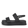 Черные кожаные сандалии в трендовом ретро-дизайне. Широкие ремешки надежно фиксируют пару на ноге. Легкая подошва из полиуретана формирует оптимальную поддержку. Модель с классическим замком с пряжкой.