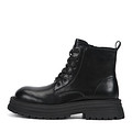Универсальные черные кожаные ботинки. Модель с подкладкой и стелькой, выполненными из мягкого ворсина. Рифленая резиновая подошва отлично поддерживает стопы и обеспечивает устойчивость на любых покрытиях. Пара со шнуровкой, застежкой на молнию и практичной петлей на голенище.