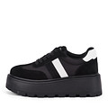 Черные женские кеды на платформе. Модель с комбинированным верхом из бархатистого спилка и текстиля. Комфорт стоп обеспечивают текстильная подкладка и мягкая кожаная стелька. Высокая резиновая подошва формирует оптимальную поддержку стоп, а шнуровка надежно фиксирует пару на ноге. Утолщенный ворот добавляет комфорта в области щиколоток, а контрастные полосы в отделке пары добавляют изделию характера.