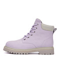 Теплые ботинки в нежно сиреневом оттенке подойдут для создания уютных повседневных образов. Материал верха - мягкая кожа из спилка. Серый утолщенный ворот бережно поддерживает зону щиколоток. Подкладка и стелька из натуральной шерсти обеспечивают оптимальную терморегуляцию. Высокая резиновая подошва с выраженными протекторами отличается прочностью и хорошим сцеплением с любой поверхностью.